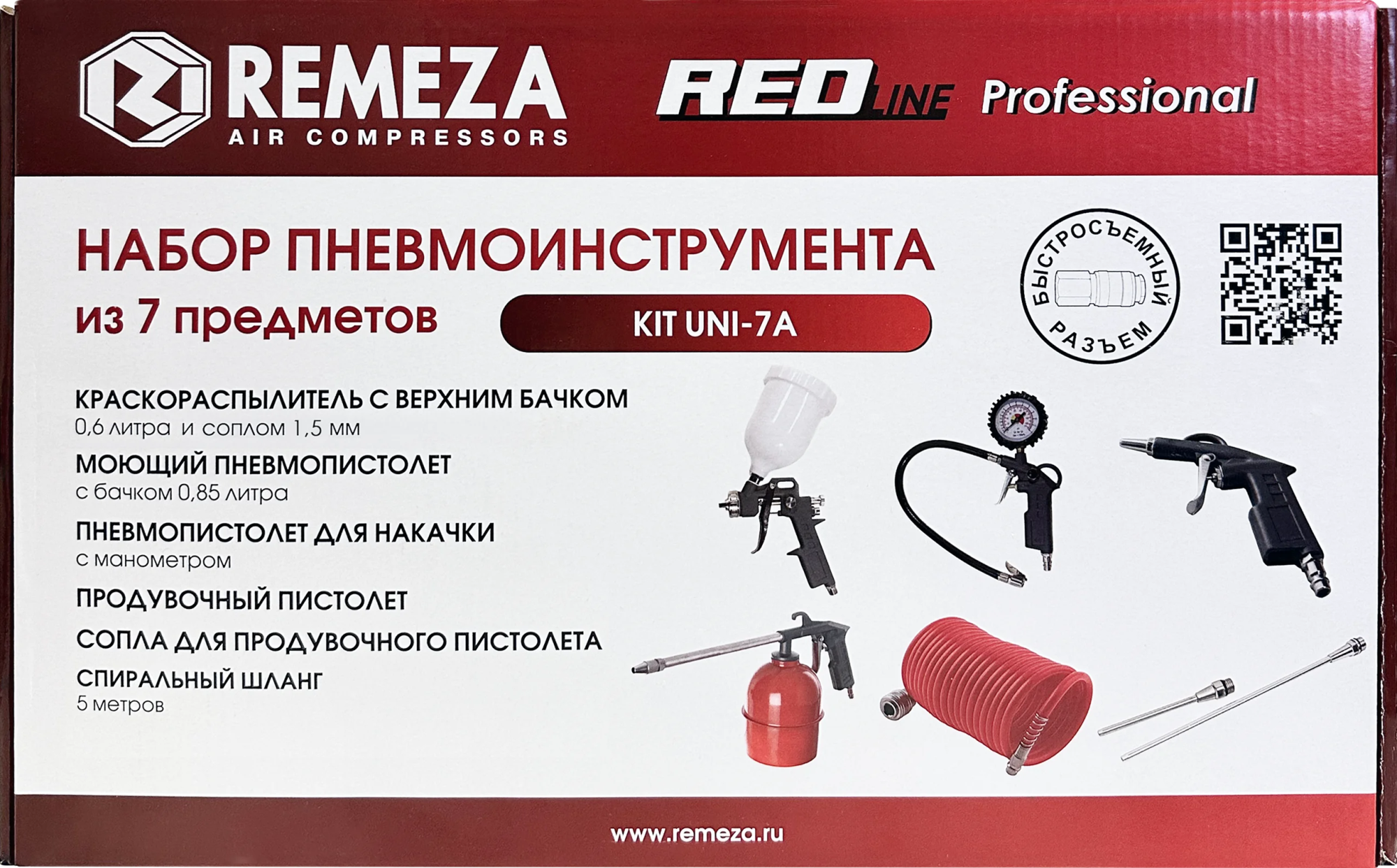 Все инструменты в наборах имеют быстросъёмное подключение, благодаря чему к спиральному шлангу можно быстро подключить любой инструмент и приступить к выполнению рабочей операции.