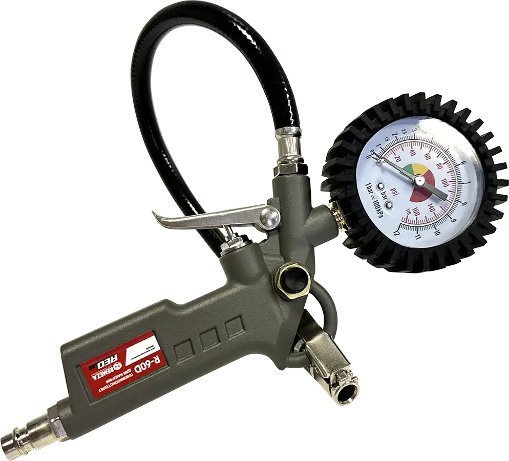 - пневмопистолет для накачки шин с манометром R-60D, с механическим манометром, длина шланга 400 мм;