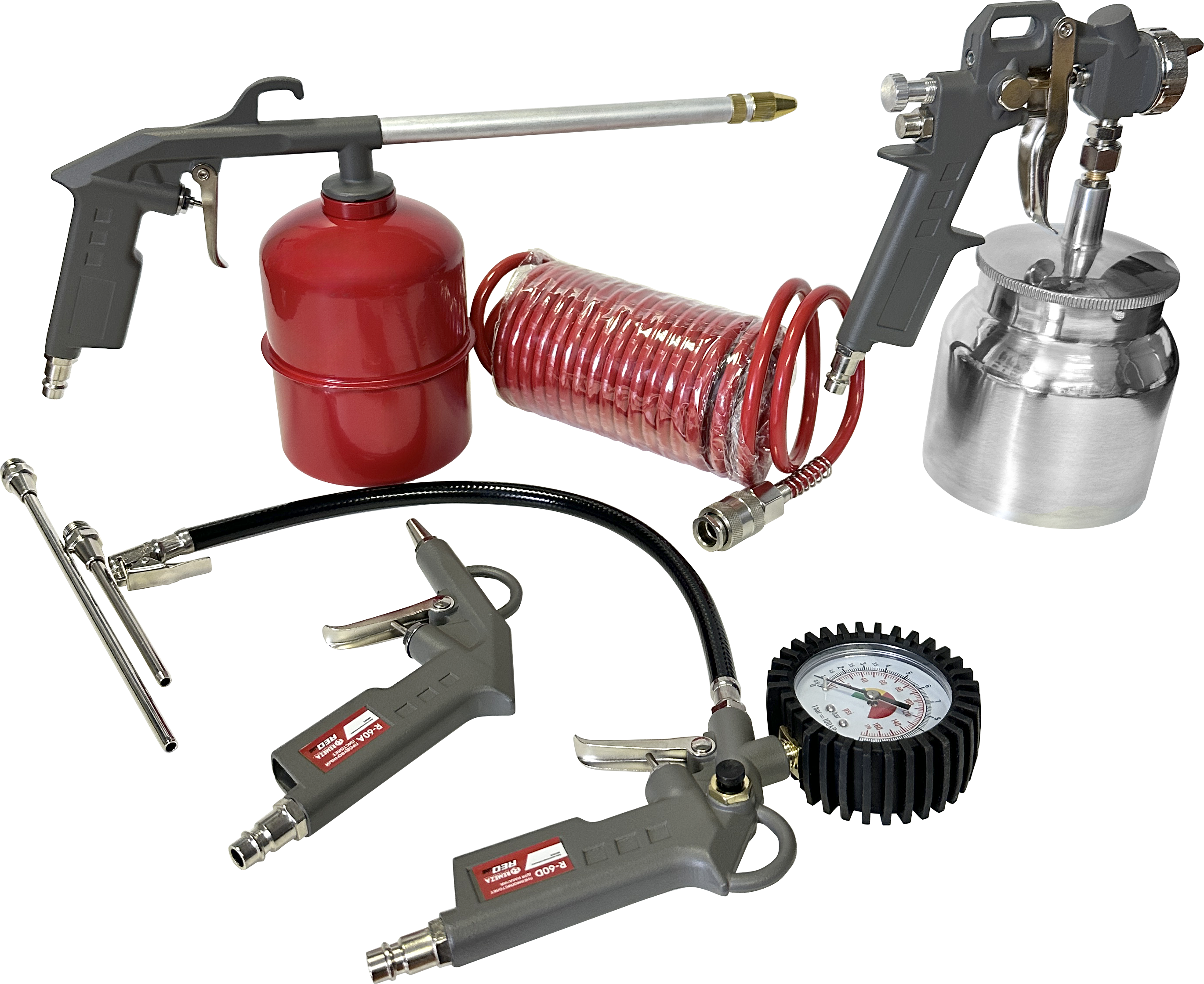 Набор включает в себя универсальные пневматические инструменты, наиболее востребованные для работы с компрессорным оборудованием: