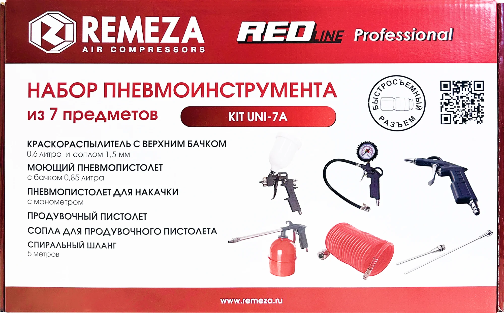 Набор пневмоинструмента KIT UNI-7A (7 предметов) – это профессиональный набор пневмоинструментов для работ в различных мастерских, гараже, производственных цехах, автосервисе.